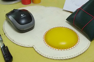 荷包蛋真皮手缝鼠标垫高端礼品总裁最爱