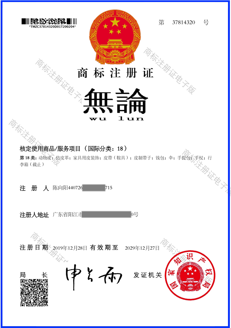 至二零二五年一月,经国家商标局审批认证的注册商标,共有五大类八个R商标: