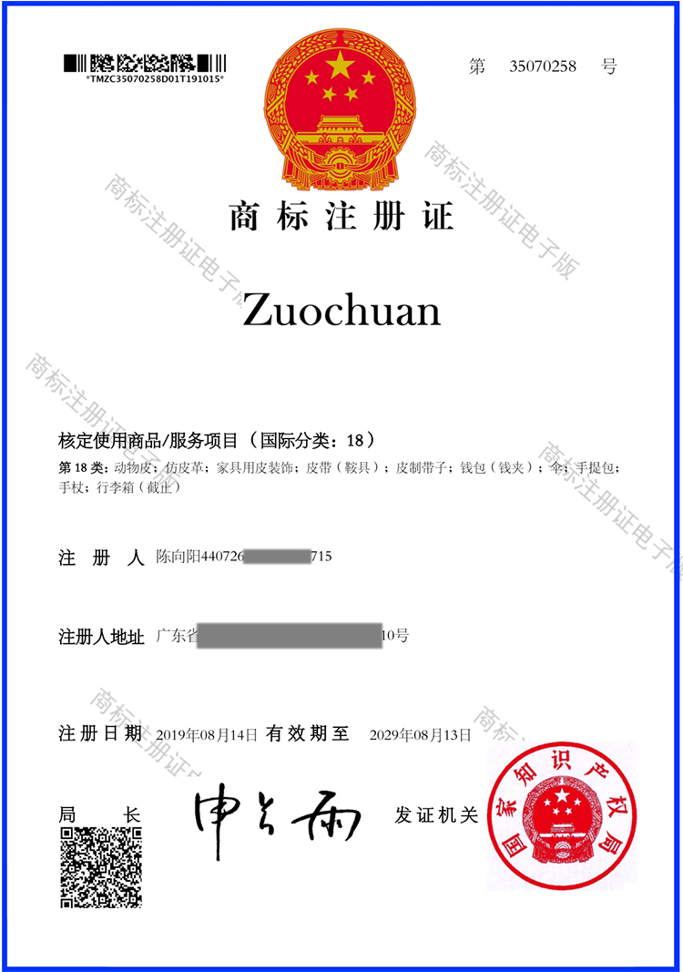 第18类商标(箱包皮具等):